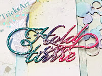 A w pracy wykorzystałam papier SOPHIE, DEKOR KROPECZKI, napis Hold on Time z TEGO zestawu, odrobinę białego Chrobotka reniferowego, białe korzonki, ręcznie robione kwiaty, kształty z masy, tusze, brokaty, medium szklące, oraz akrylowe śnieżynki.