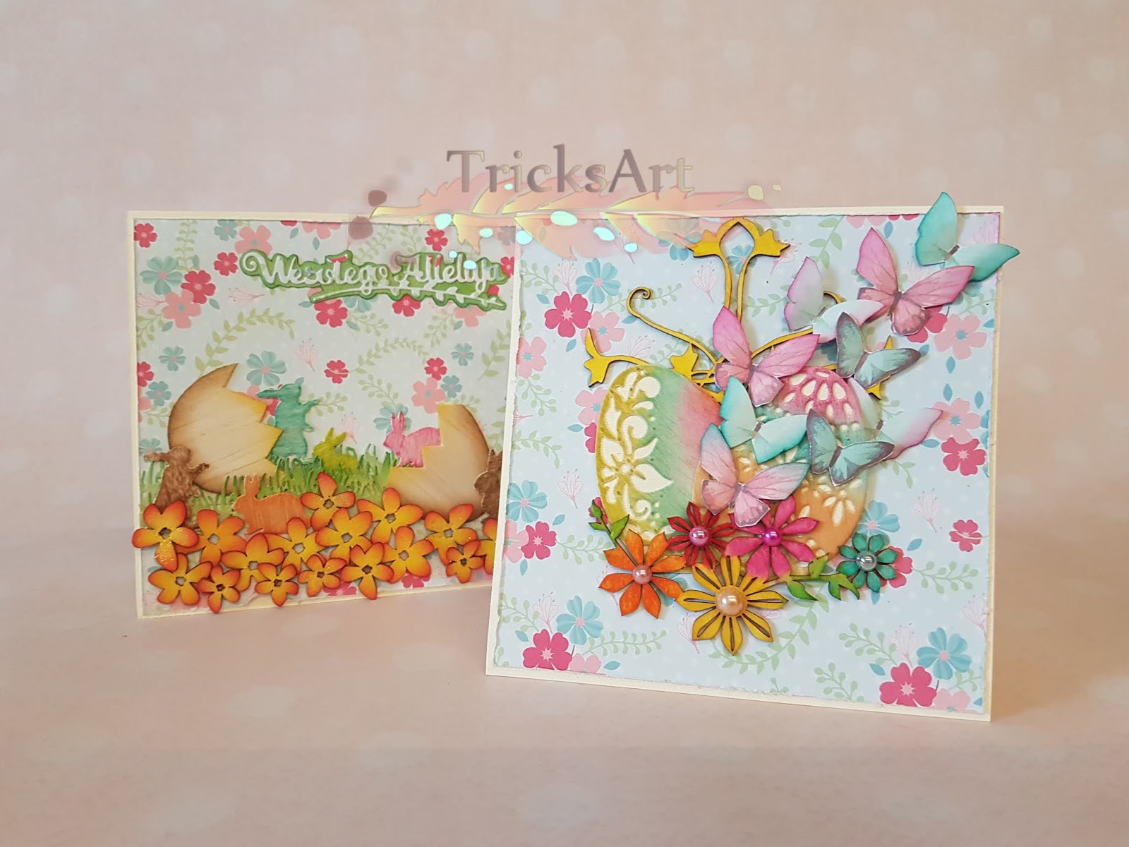 Ja wiem, że Wielkanoc była jakiś czas temu... cóż... takie karteczki wykonałam w ramach inspiracji do wyzwania TricksArt...